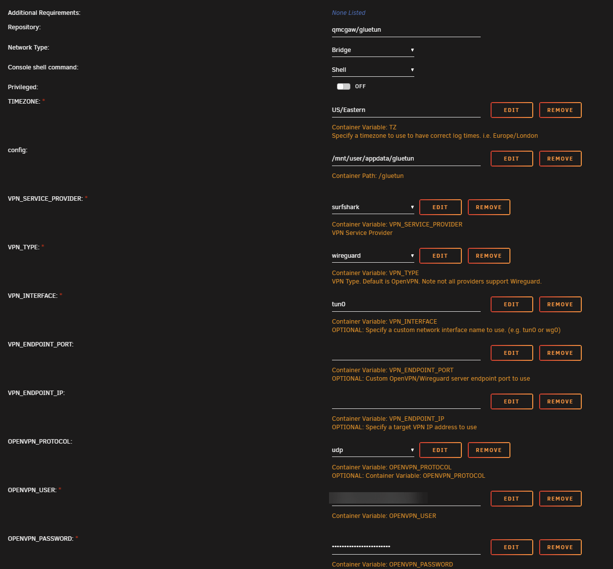Má někdo úspěšně nastavil Gluetun VPN docker kontejner a směroval své klienty ke stahování přes něj? Postupoval jsem podle dokumentace a vypadá správně, ale nefunguje to. Vypadá moje nastavení Gluetun správně?