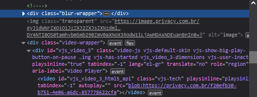 A zde je kód videa, když kliknu pravým tlačítkem a zvolím Inspektor při přehrávání, pokud si to někdo dokáže rozluštit, jak to funguje, žádný .mp4 nebo jiný formát videa není k nalezení: