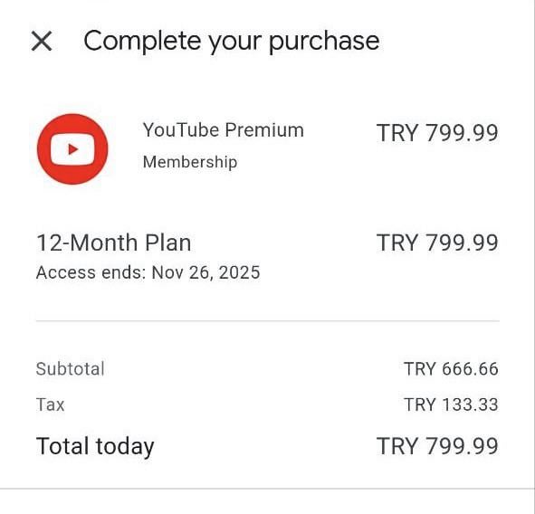 Také jsem nedostal možnost rodinného předplatného v Turecku